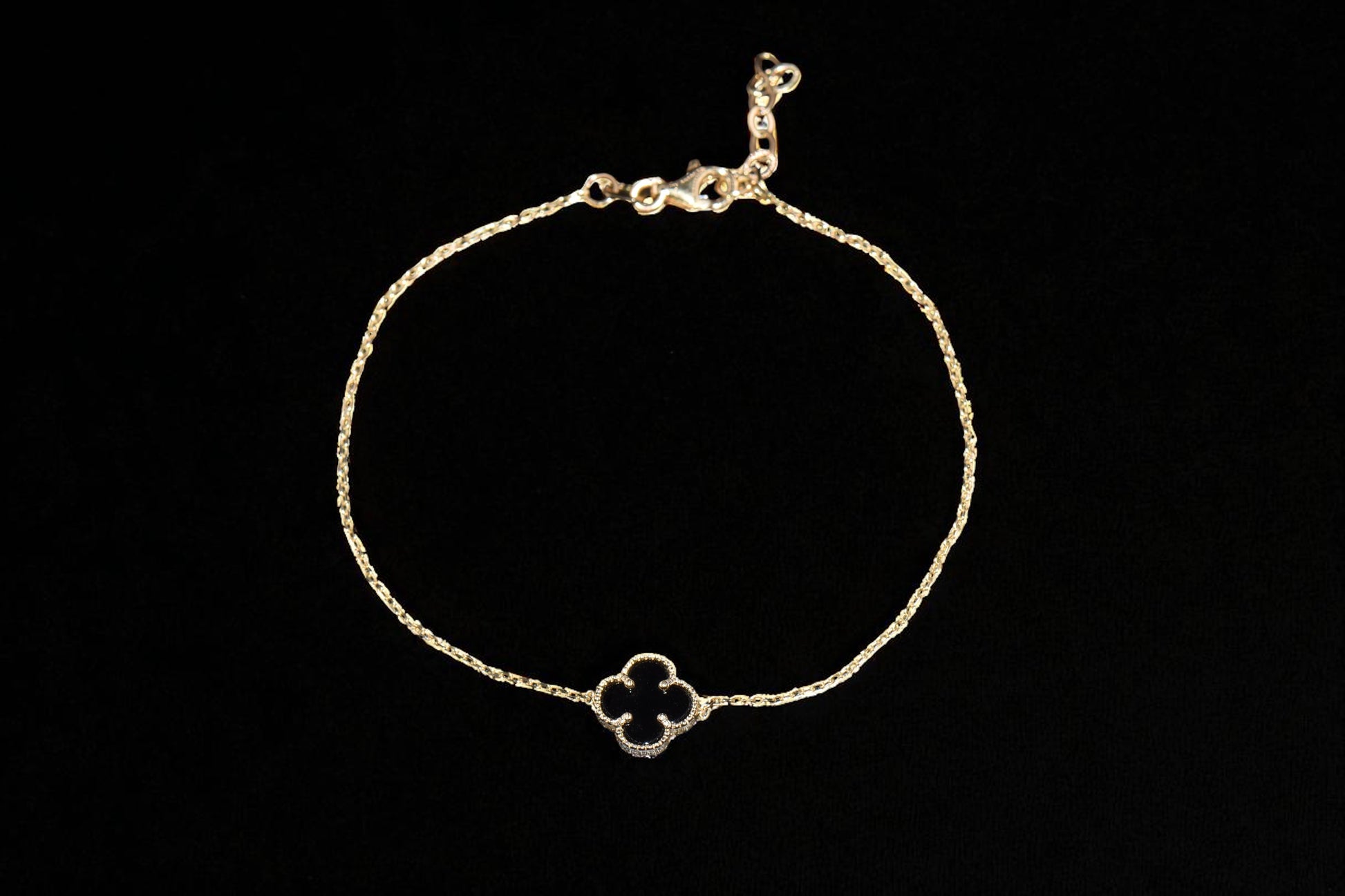 14K Yellow Gold Adjustable Black Flower Bracelet – 8in